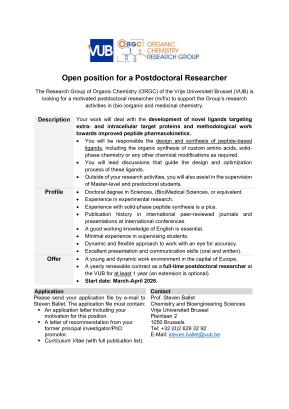 Even if we do not have open positions at this moment, we are happy to assist qualified candidates in applying for scholarships (FWO, CSC, DAAD and beyond). If you are interested, please send your detailed application with the documents, such as personalized cover letter, CV, publication list; preferably as a single pdf-document, to Prof. Hennecke or Prof. Ballet (do not expect consideration or response to unspecific mass applications).
