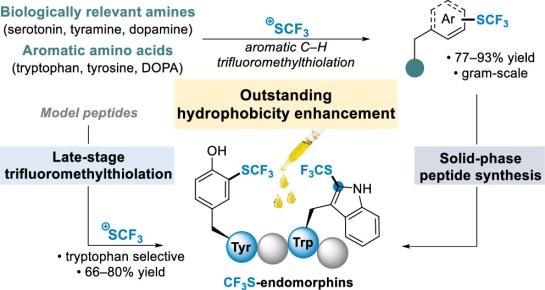 Link to Publisher’s page: Trifluoromethylthiolation of Tryptophan and Tyrosine Derivatives: A Tool for Enhancing the Local Hydrophobicity of Peptides | The Journal of Organic Chemistry